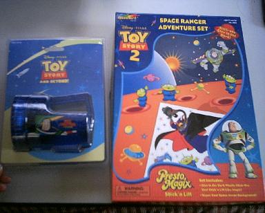左は懐中電灯。白い壁とかに向けて照らすと、”バズライトイヤー”のかっこいいロゴが!!