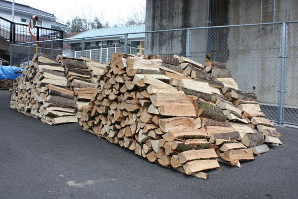 ⇒価格:5,000円/軽トラ1車分 好評につき、完売いたしました。 2.玉切り状態(長さ40センチほど) ⇒価格:10,000円/軽トラ1車分 好評につき、完売いたしました。 3.割り木状態(長さ40センチほど中割 ⇒価格:15,000円/軽トラ1車分 好評につき、完売いたしました。 (注記) 1)価格は豊田市富田町の作業場渡しのものです。 2)運搬賃は含まれていません。 3)軽トラ1車分とは0.8立方メートルほどを想定しています。 4)原木伐採時期は平成24年2月・3月のものです。 5)樹種はナラ類、カシ類など広葉樹のみです。 販売のお問い合わせ販売場所の地図は、こちらです。